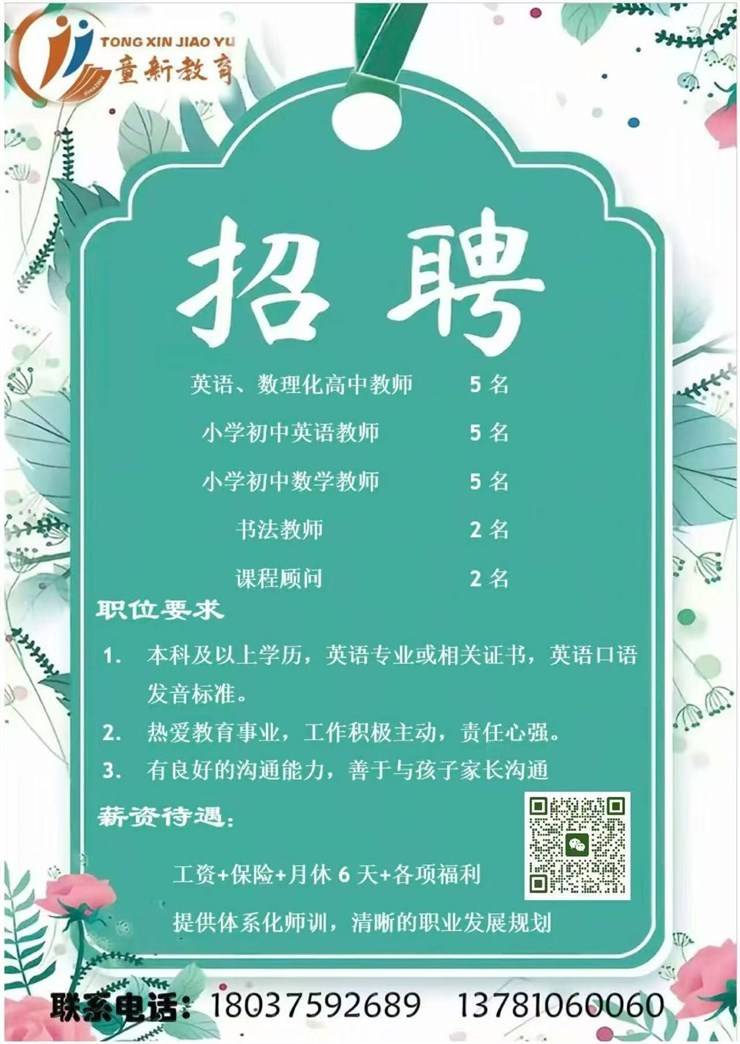 招聘单位:汝州市童新艺术培训有限公司
